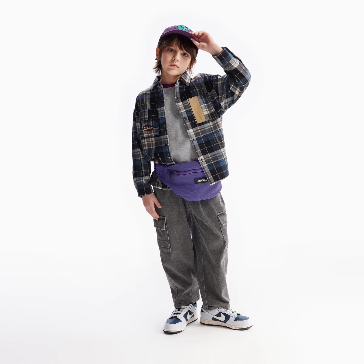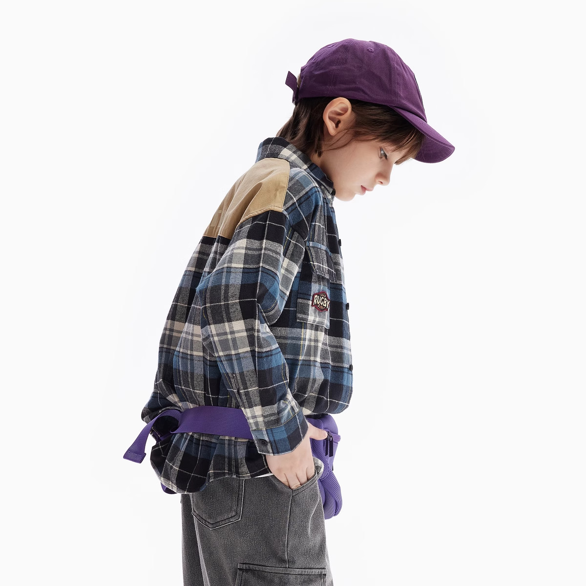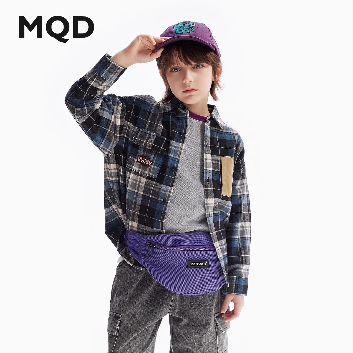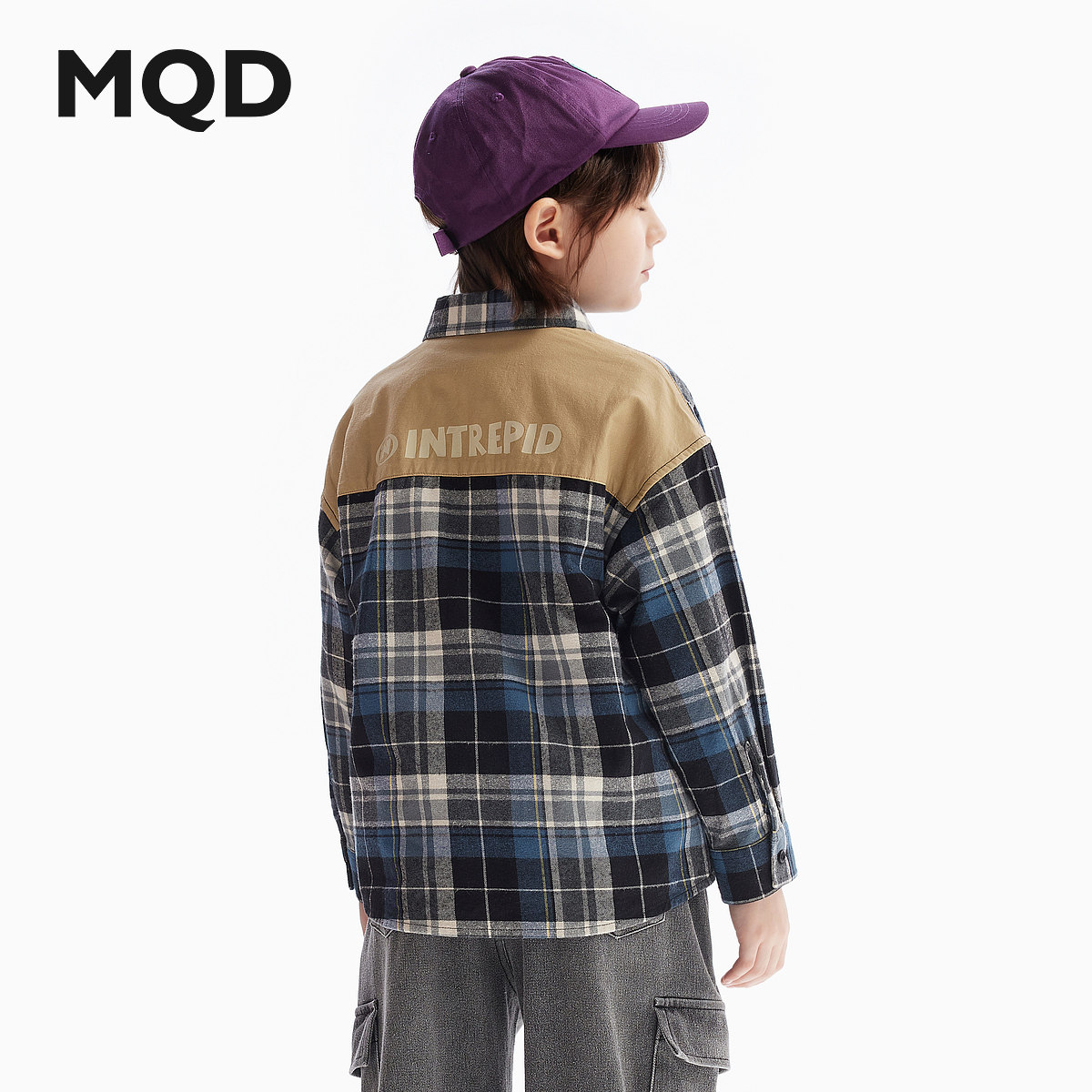 MQD童装男童格纹衬衫春季款儿童拼接外套儿童中大童学院夹棉衬衣