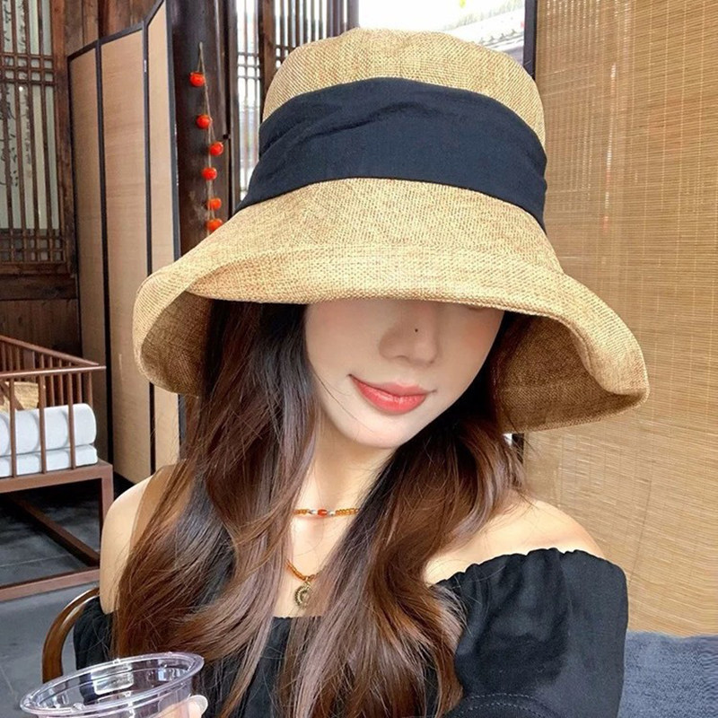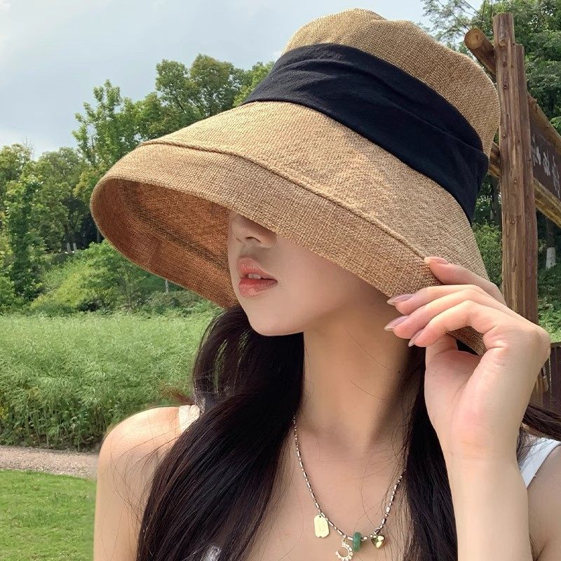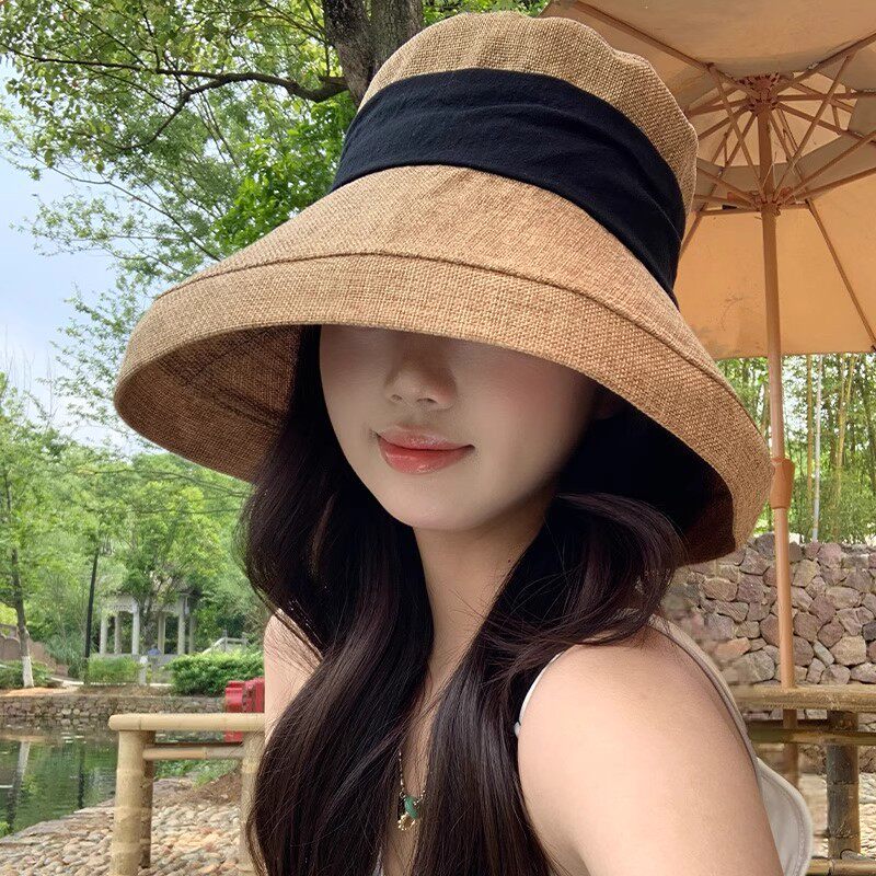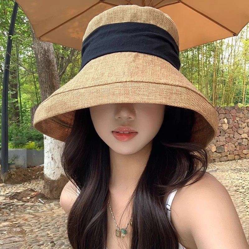 自留款夏季棉麻大檐渔夫帽女日系户外防晒显脸小可折叠遮阳帽子