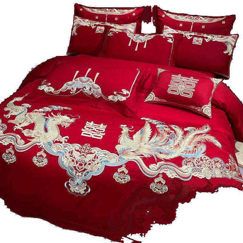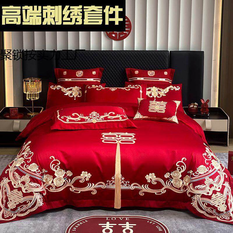 婚庆四件套婚嫁新婚床品刺绣被套红色结婚礼婚房婚床喜庆绣花套件