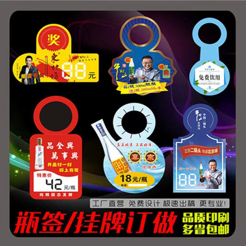 爆款白酒瓶吊牌定制水瓶吊卡片广告挂牌印刷啤酒瓶颈套标价签
