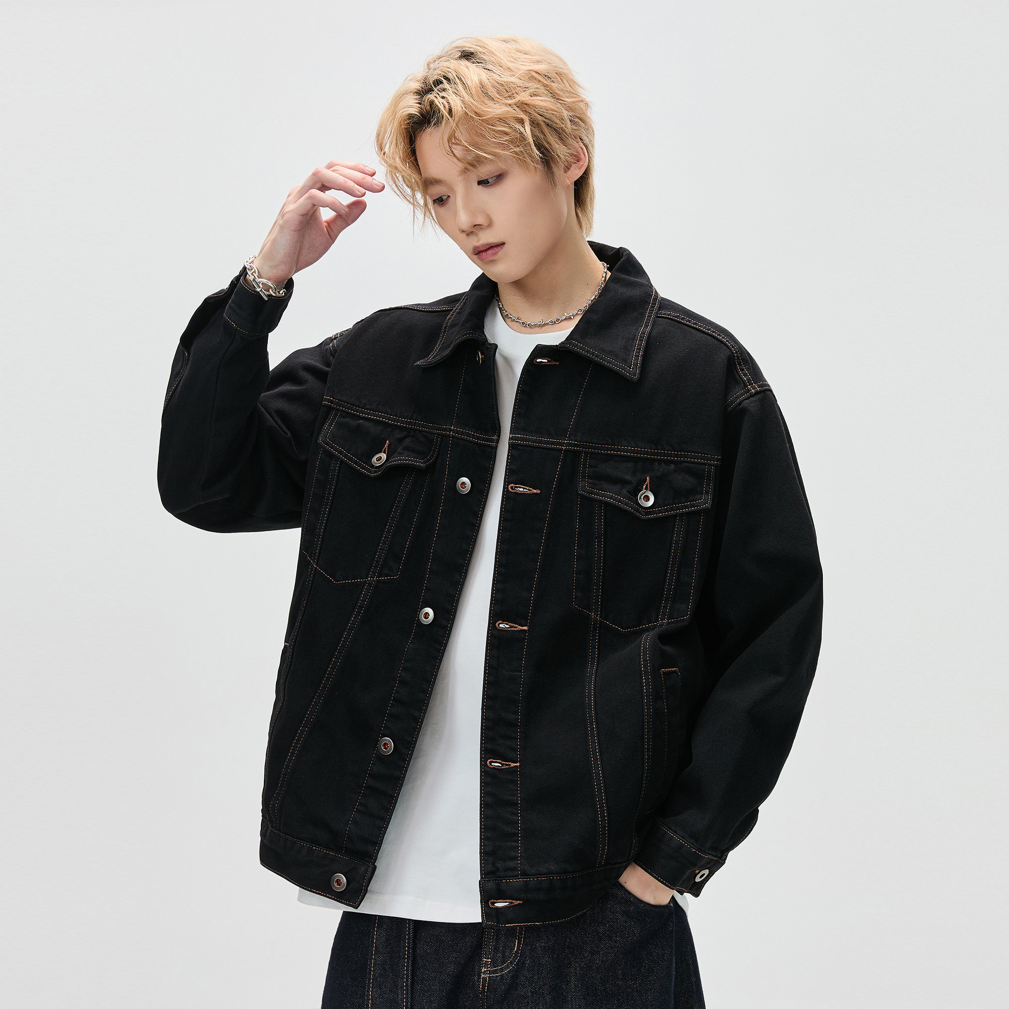 SELFNESS丨脱浆软化解构Type3男士春款水洗黑色牛仔夹克外套