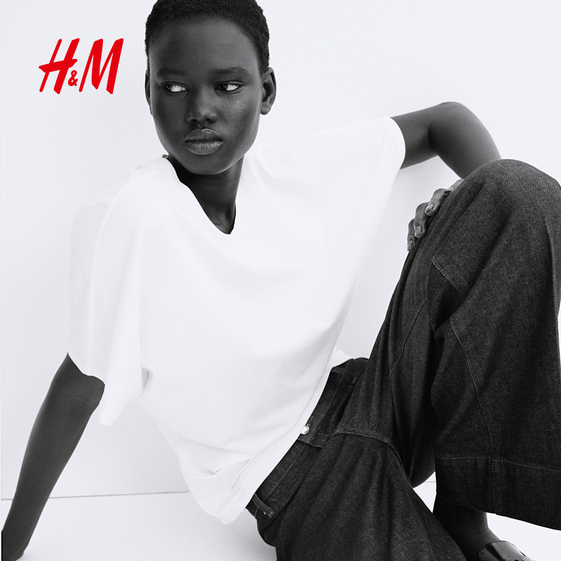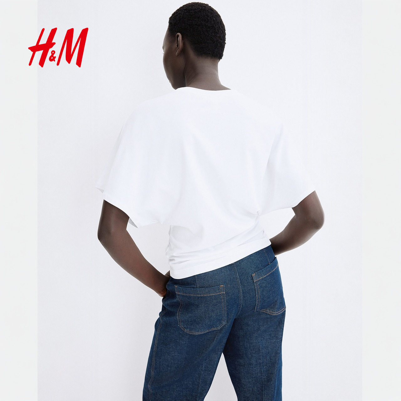 HM女装T恤春季圆领简约短袖潮流时尚蝴蝶袖T恤1294172
