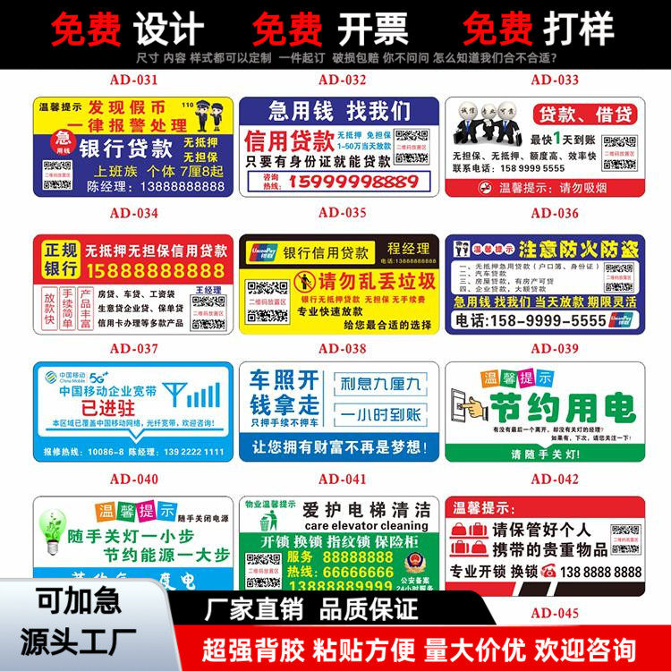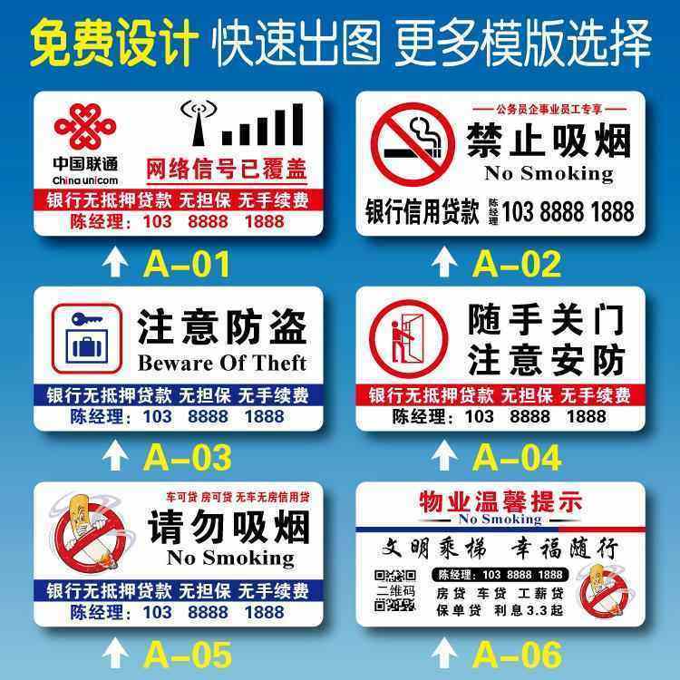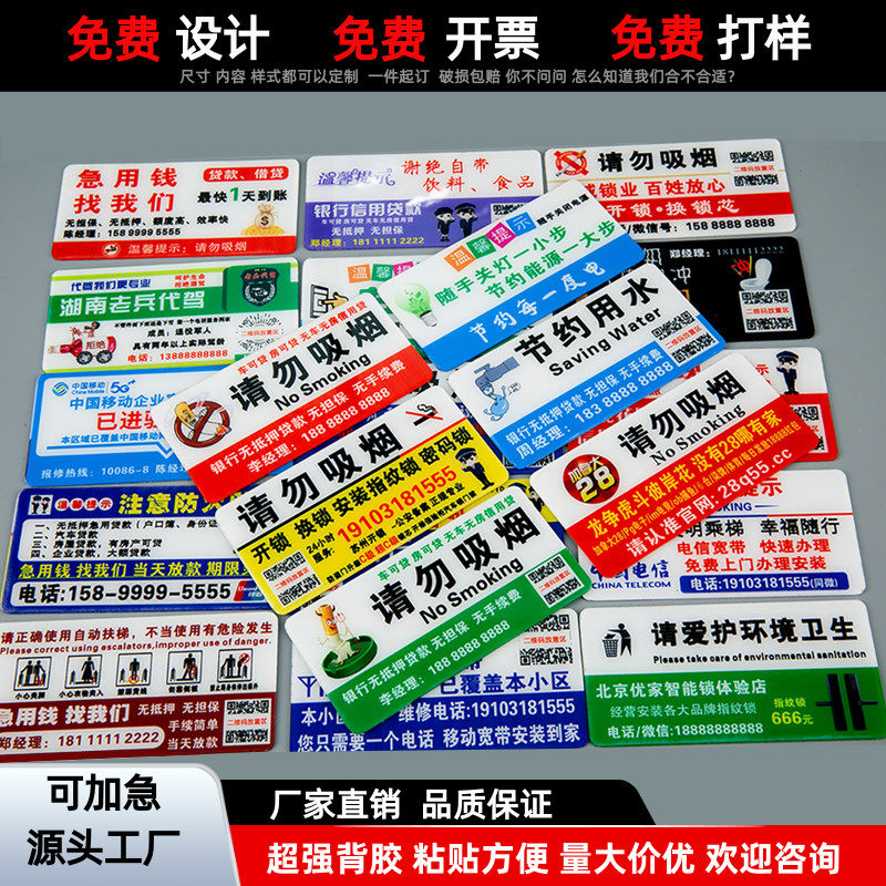 亚克力楼道电梯小广告牌请勿吸烟贷款开锁小广告贴标识牌厕所贴纸