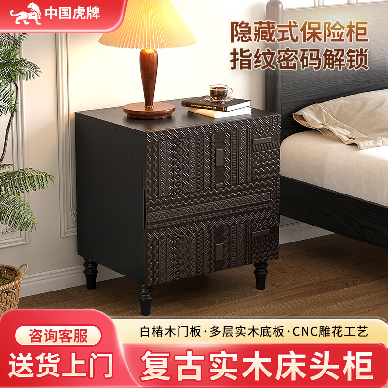 虎牌家用隐形保险柜小型防盗保险箱床头柜一体隐藏式复古家庭卧室看不出来搬不走的存钱智能密码箱2025新款
