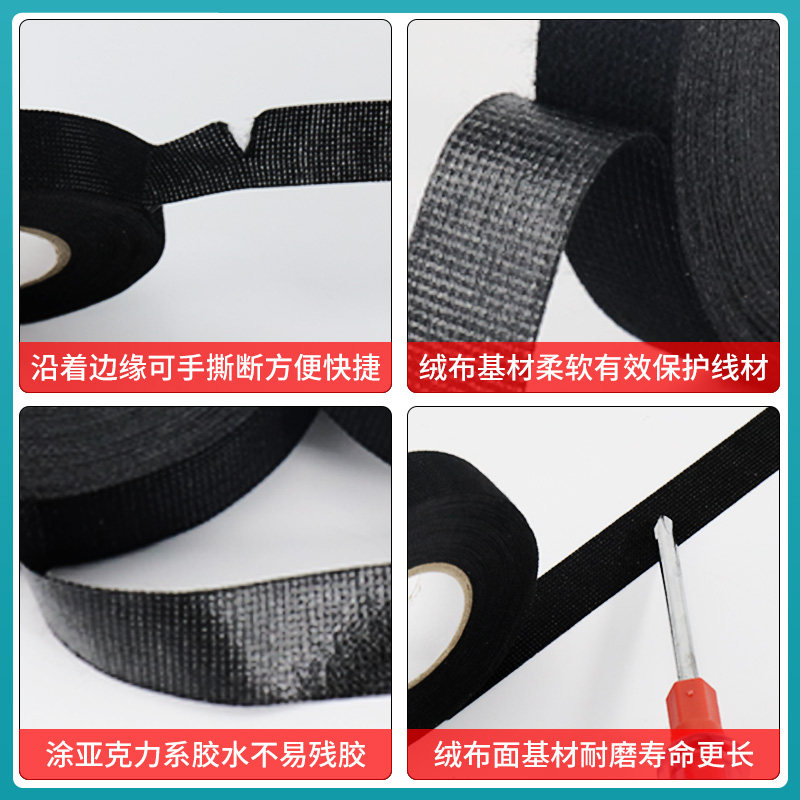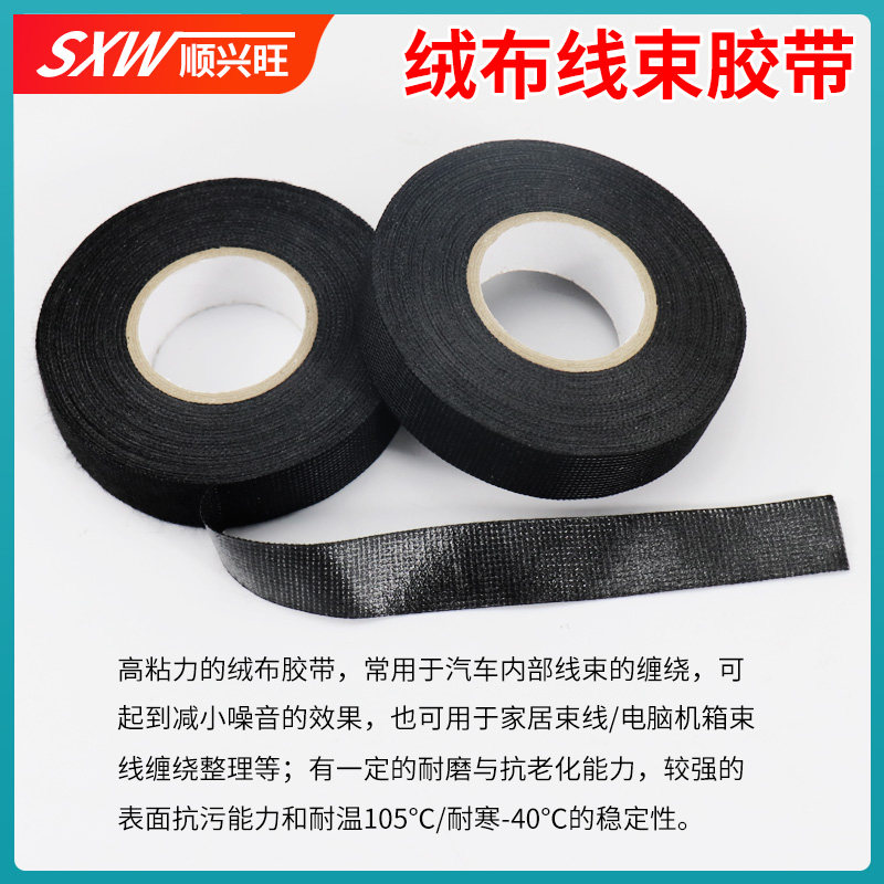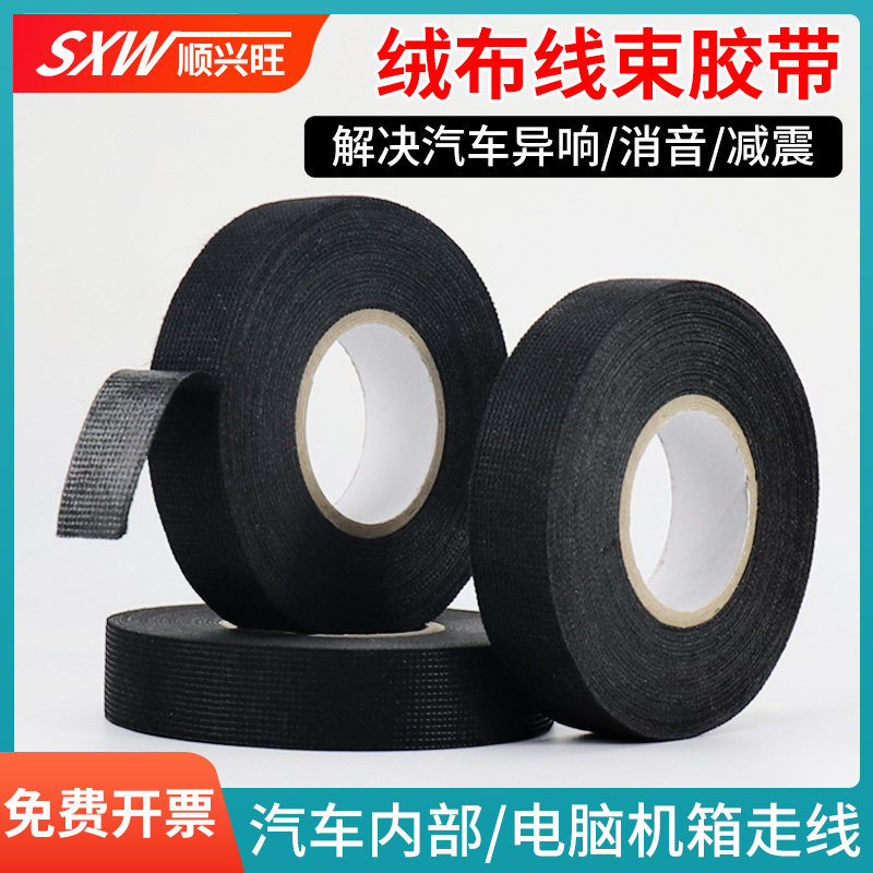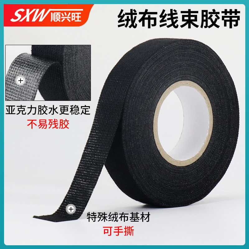 顺兴旺 绒布胶带线束胶带耐高温电工胶布线束胶布线速涤纶胶布线束布胶带汽车发动机舱隔音线路屏蔽绝缘胶带