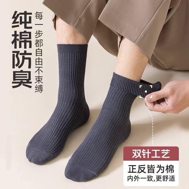 棉袜子纯棉男款冬季防臭中筒袜新疆春秋款男士长袜长绒棉双针耐磨