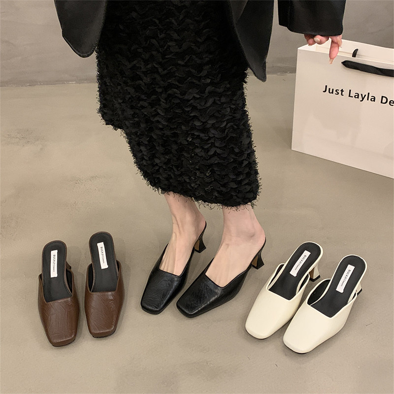 气质高跟包头半拖鞋外穿女鞋子2025年春夏新款粗跟不累脚浅口单鞋