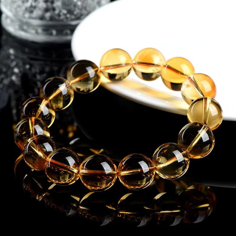仿黄水晶手链女黄色水晶珠子正品散珠男士手串情侣水晶手饰