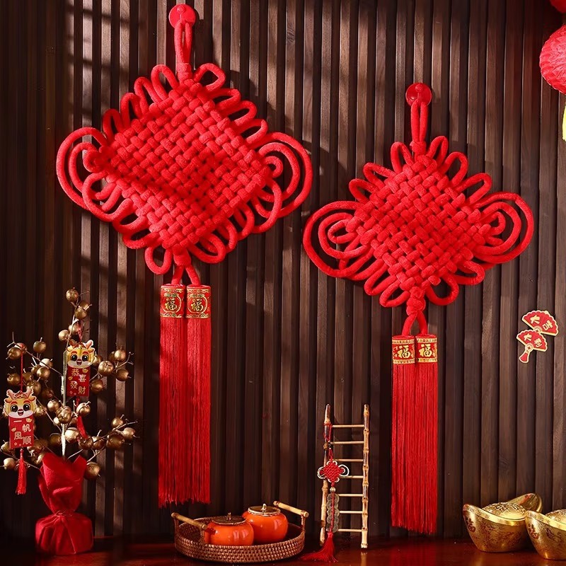 中国结挂件高档客厅大号绒布编织红色福字挂饰入户门玄关小号装饰