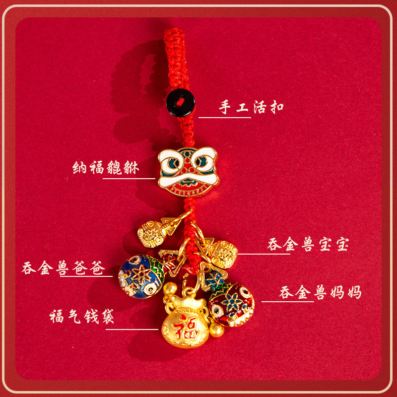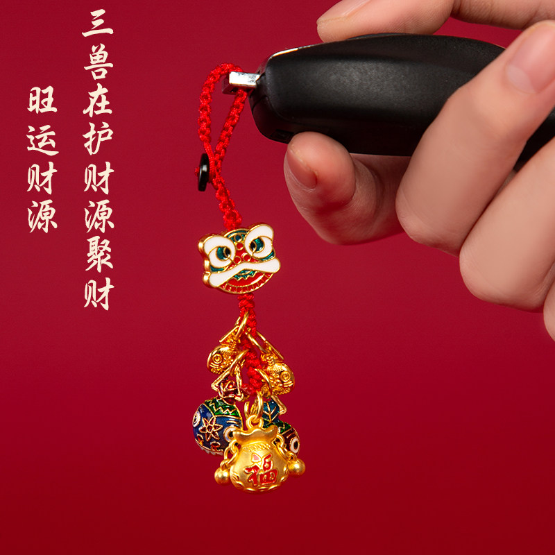 财神爷吞金兽一家三口四口古法招财钥匙扣车钥匙链手机挂件挂饰