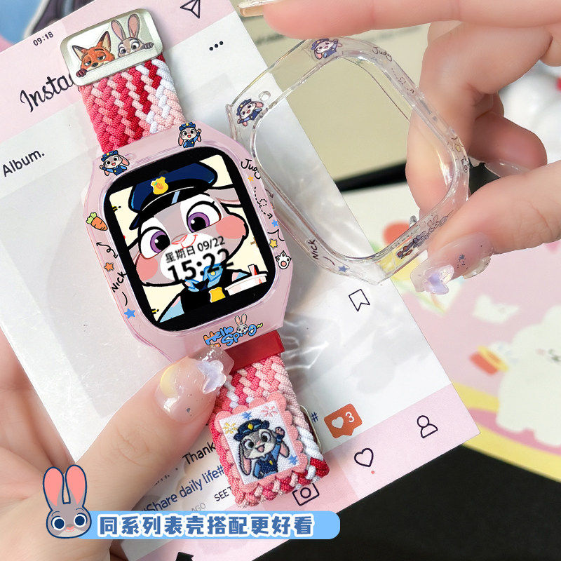 【疯狂动物城】适用小米米兔儿童电话手表7/7x表带7A/c7a编织腕带4C保护壳5c表带6c挂脖S1配件手表套男女