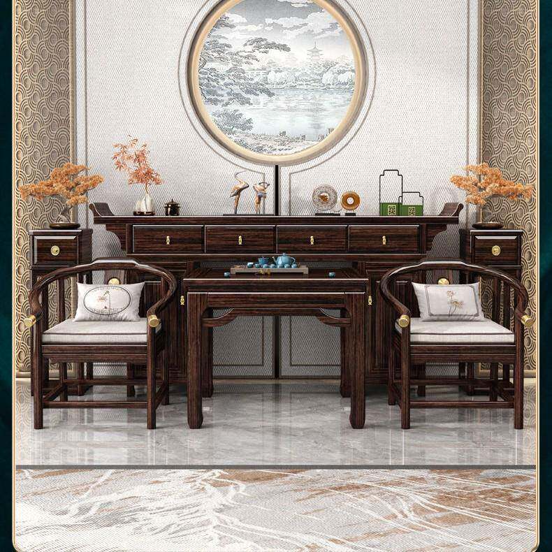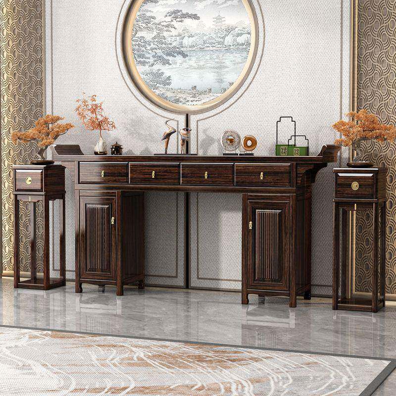 新中式紫金檀神台堂条桌六件实423套八仙桌供桌木供案台佛台香中条案