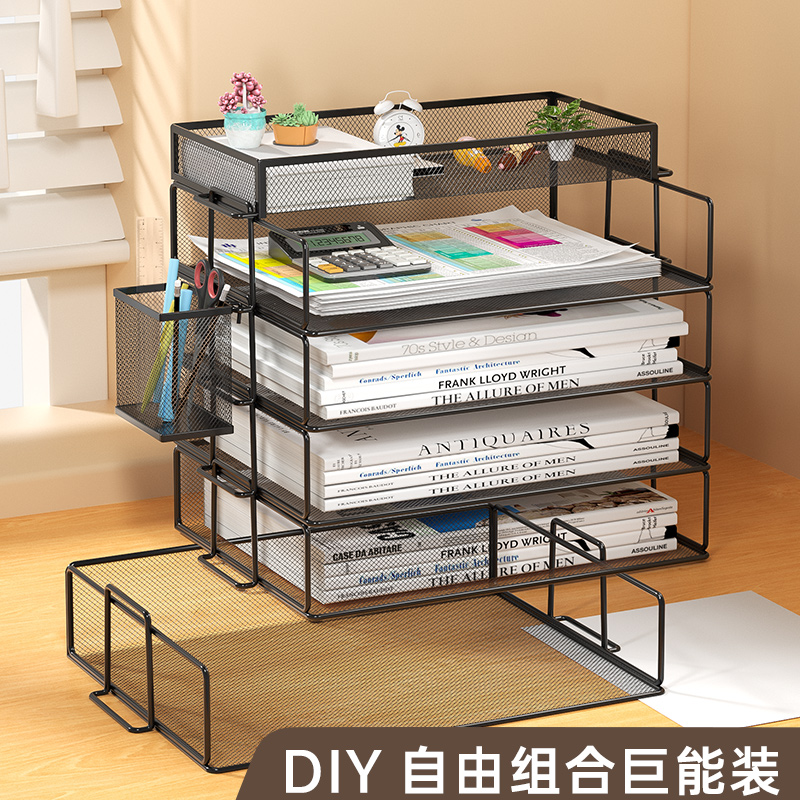 办公桌收纳置物架文件收纳盒办公用品文件架桌面书架多层大容量文件框文件夹A4纸资料档案整理架金属书立架