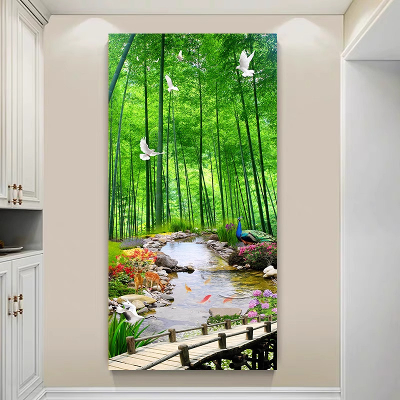 风景画入户玄关装饰画自粘沙发背景墙贴画走廊客厅贴纸防水墙壁纸