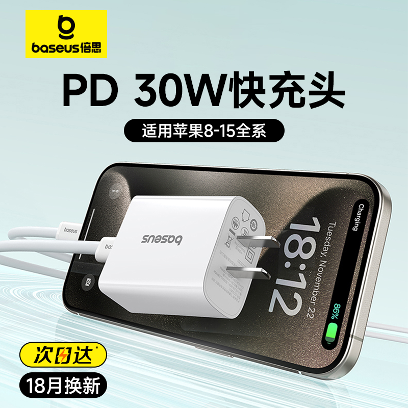 倍思20w充电器pd充电头适用苹果15快充30w正品iPhone14Promax手机ipad平板typec插头13闪充se数据线套装通用