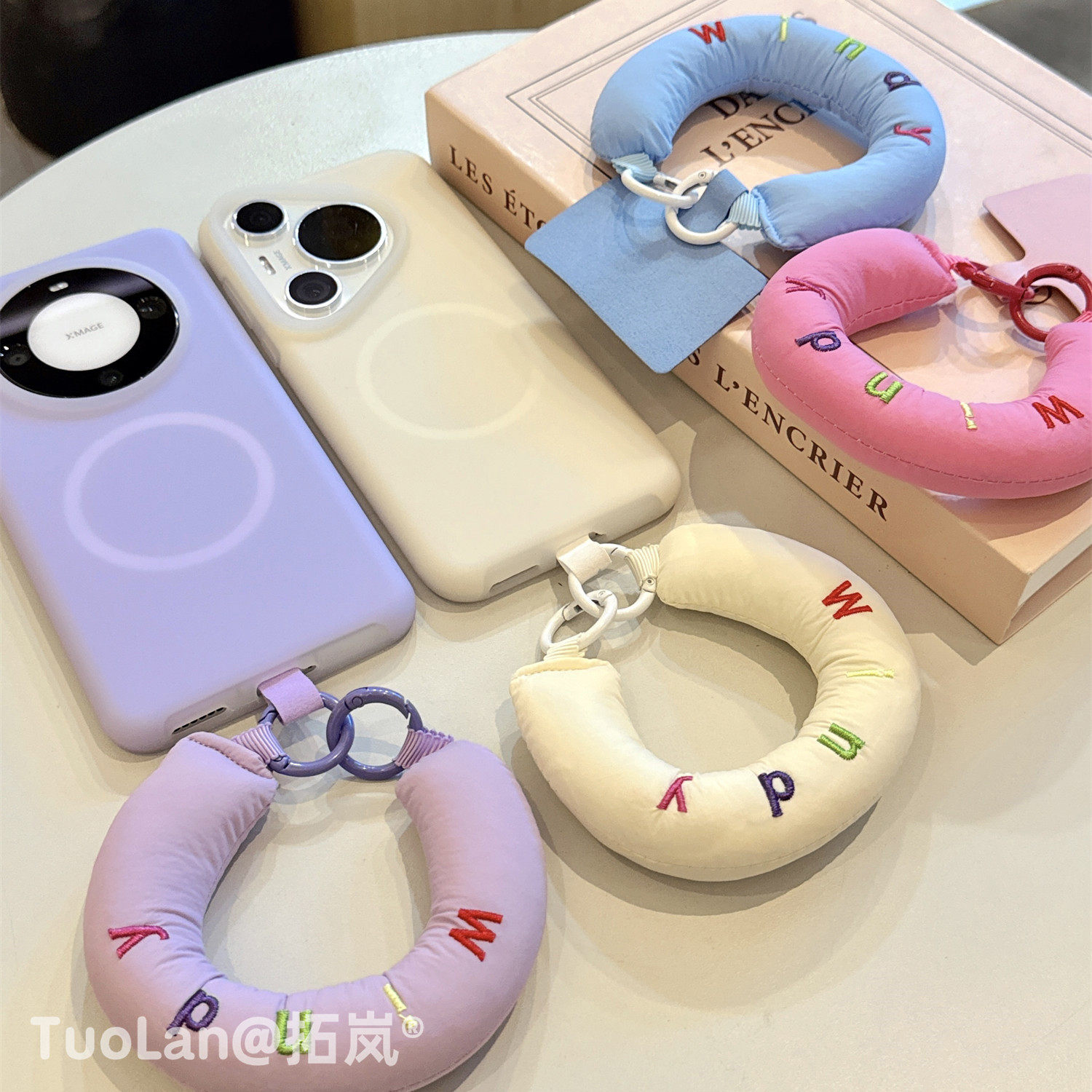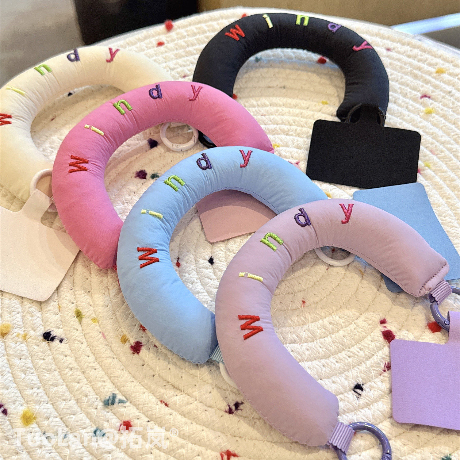 拓岚 新款韩风ins纯色手工布艺刺绣windy英文字母软绵绵充棉C手腕带挂绳手机手提配饰防丢高颜值夹片女款纯色