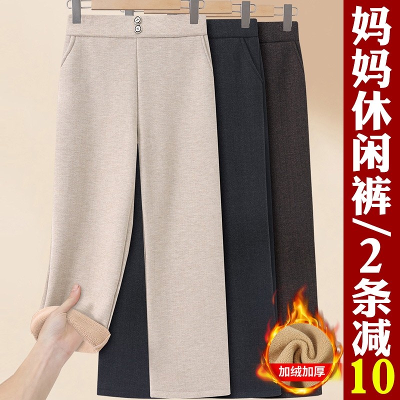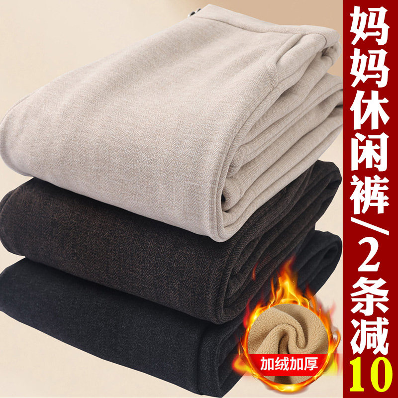 妈妈裤子冬季高腰毛呢裤中老年女裤加绒加厚奶奶装长裤春秋休闲裤
