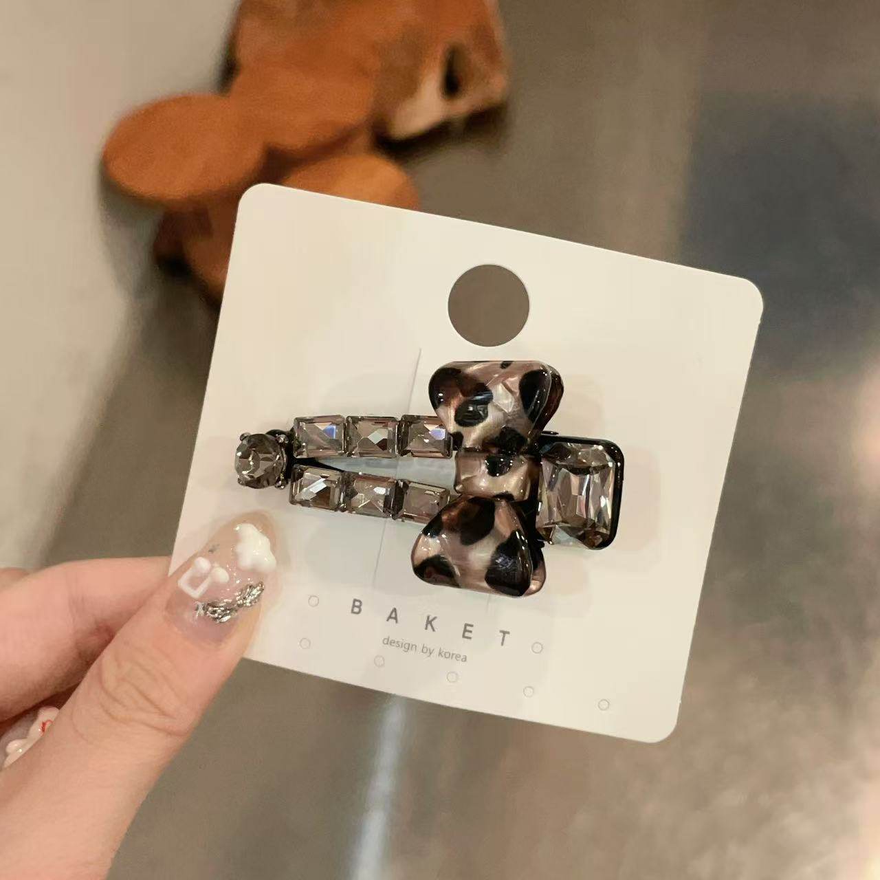 8.16韩国东大门baket发饰豹纹花朵蝴蝶结冰透水钻鸭嘴夹发夹