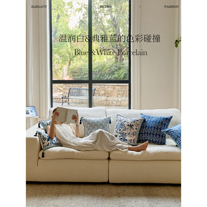 蜡笔派青花瓷抱枕法式复古风客厅沙发卧室靠垫床头夹腿靠枕睡觉