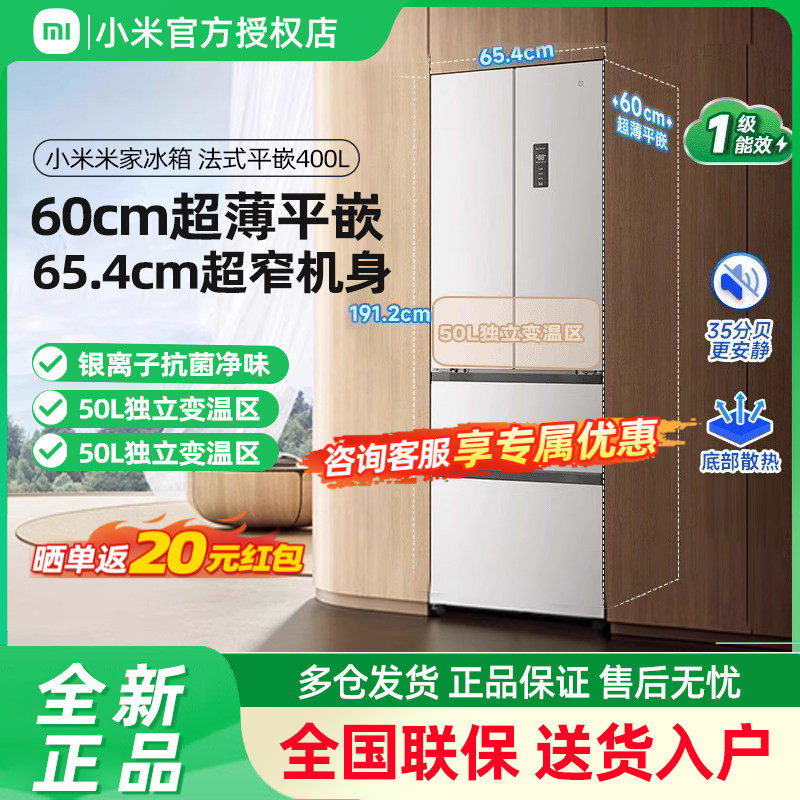 【2025年新品】小米米家冰箱400L法式四门一级60cm超薄平嵌小户型