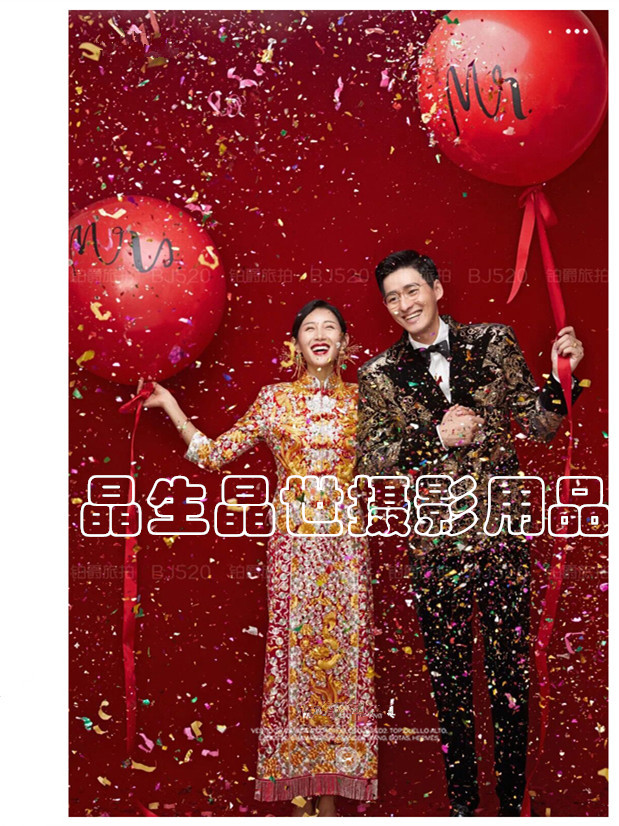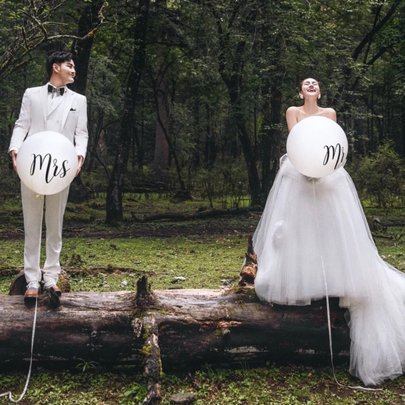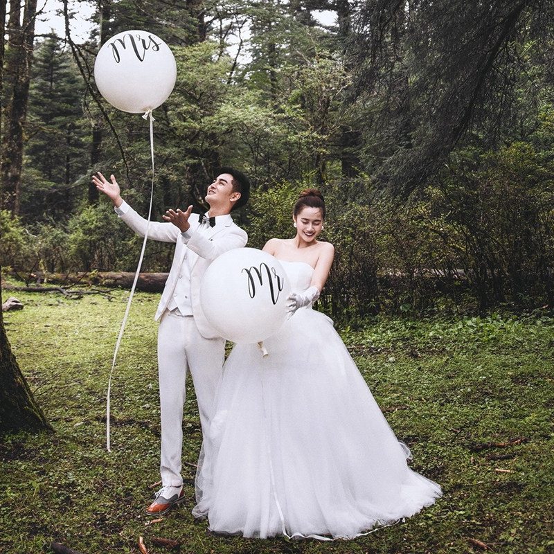 影楼森系摄影道具创意旅拍婚纱照外景婚礼拍照浪漫Mr Mrs气球装饰