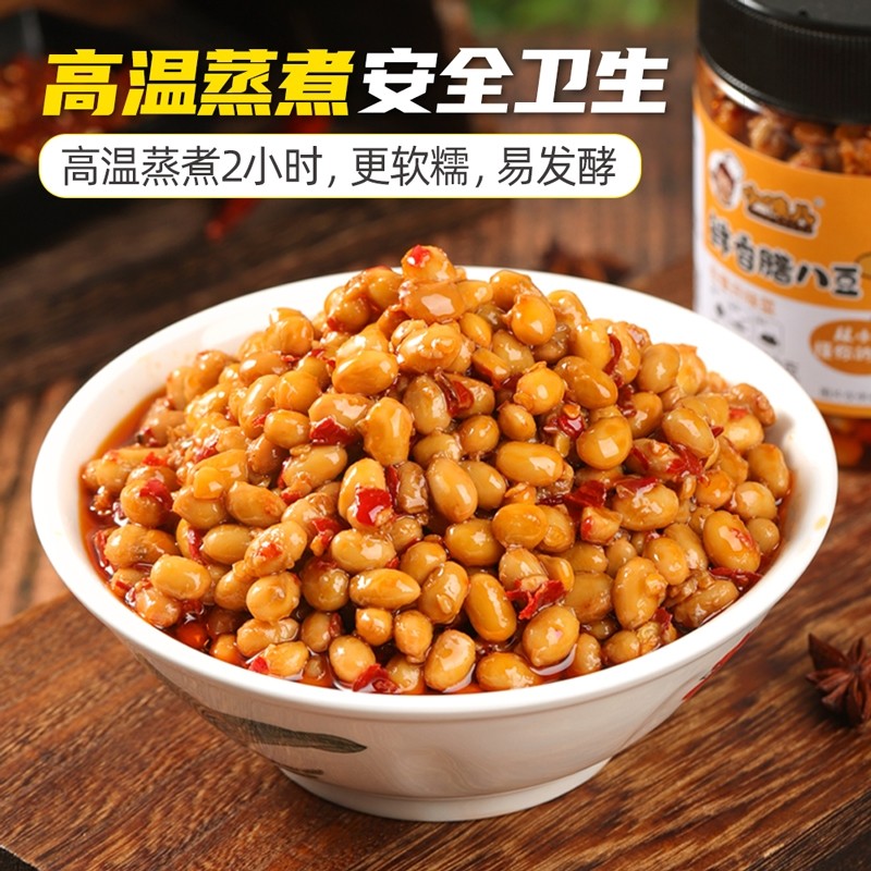 湖南腊八豆下饭菜黄豆下饭酱农家自制湖南特产豆瓣豆豉酱瓶装拌饭