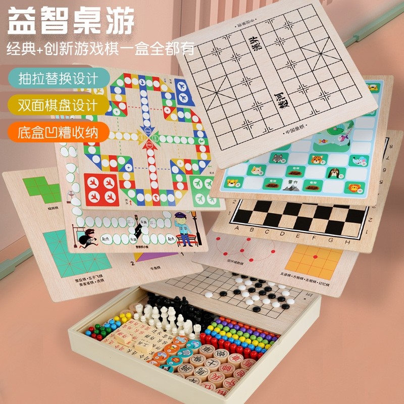 大号跳棋飞行棋五子棋斗兽棋多功能棋子儿童小学生成人玩具多合一