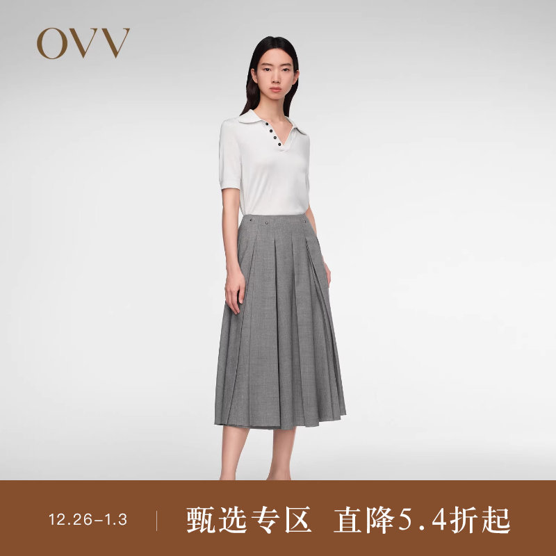 OVV春夏热卖女装羊毛混纺铆钉装饰A字百褶半身裙