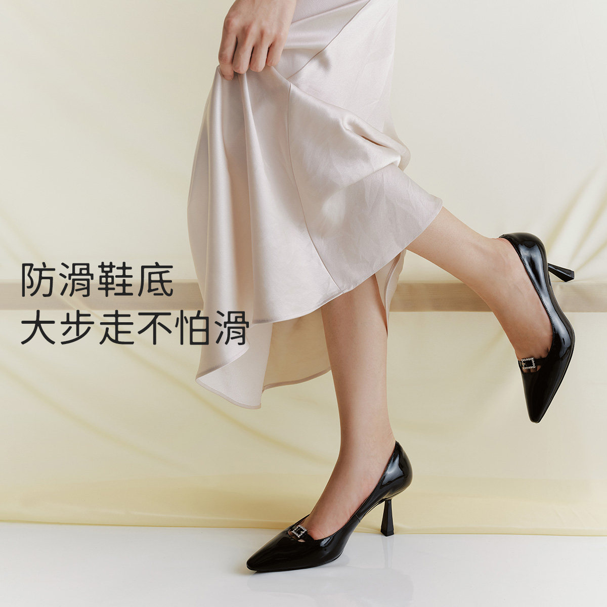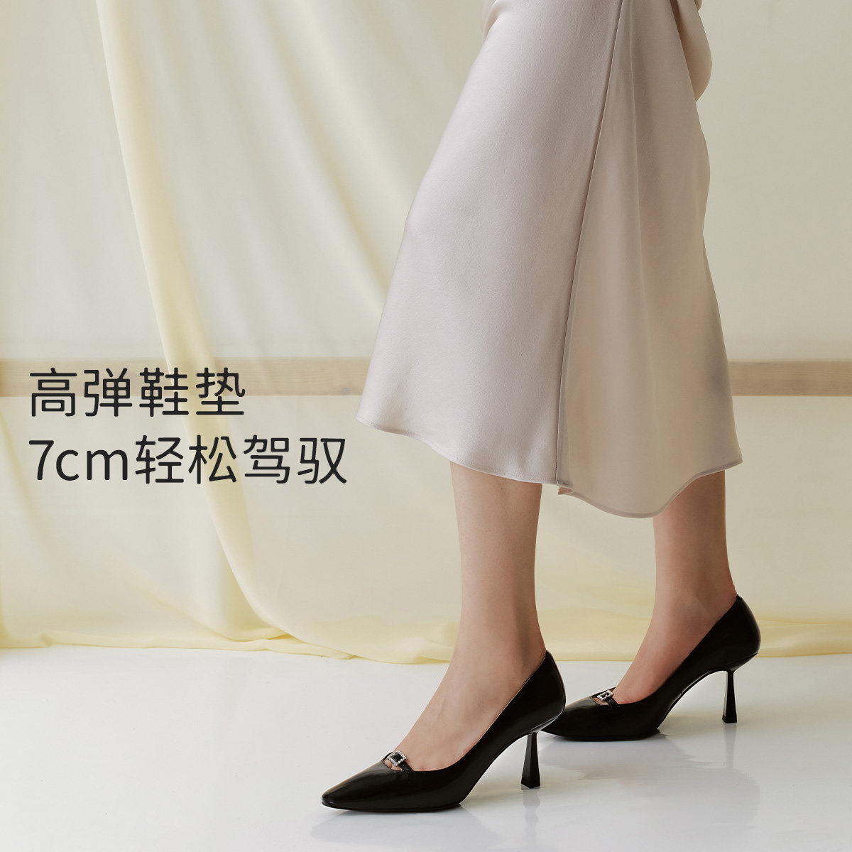 【明星同款|静音系列】千百度练习曲裸色高跟鞋真皮通勤法式单鞋