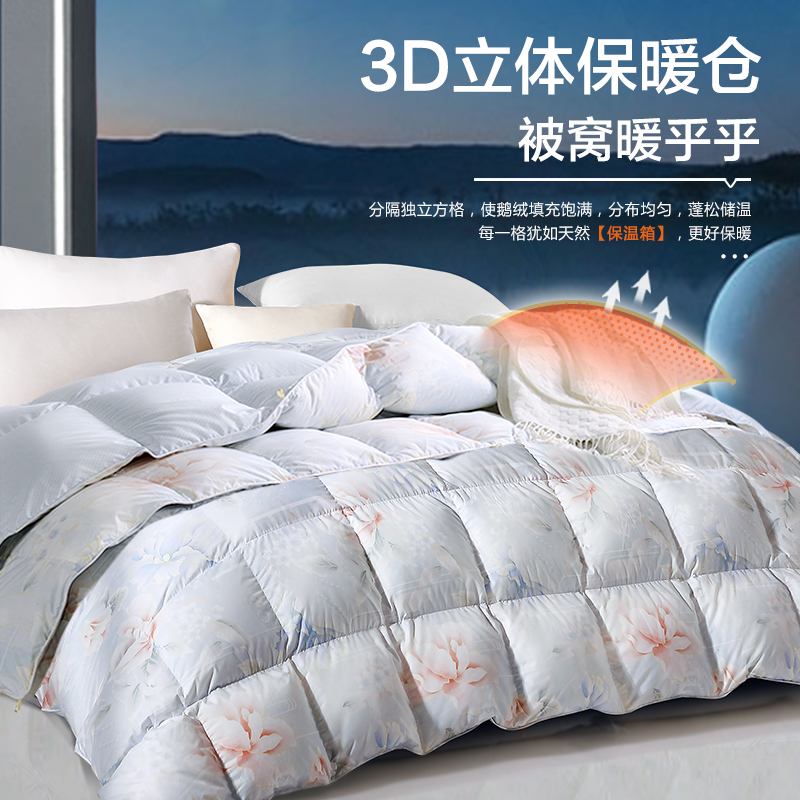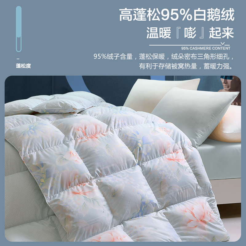 水星家纺A类抑菌阻螨95白鹅绒被保暖蓬松羽绒被子高端蓬松被芯