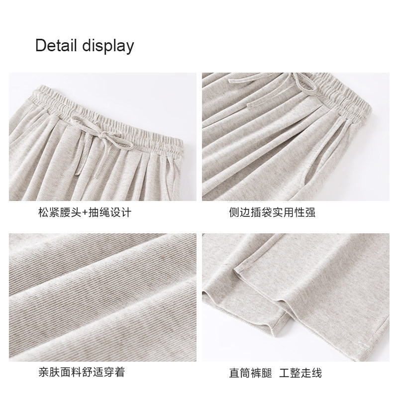 双侧带口袋棉绸绵绸人造棉高腰显瘦直筒裤女宽松休闲百搭阔腿长裤
