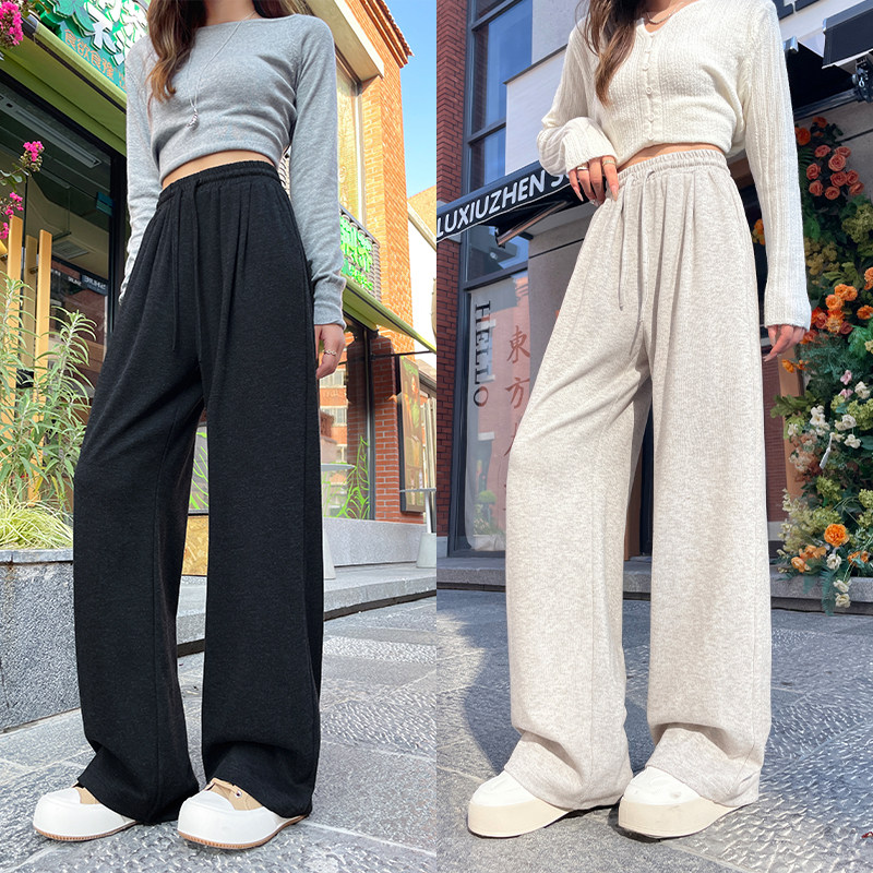 唐狮DESSO秋冬新款糯米裤高腰垂感宽松加绒直筒阔腿裤