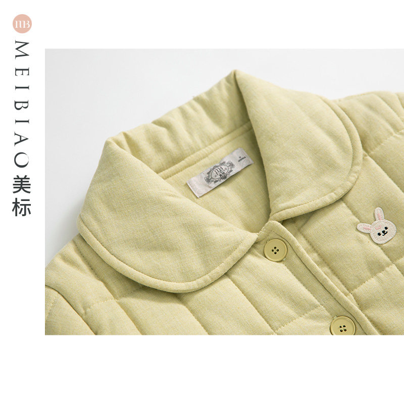 美标新款三层加厚保暖夹棉保暖睡衣套装女秋冬纯棉全棉刺绣家居服