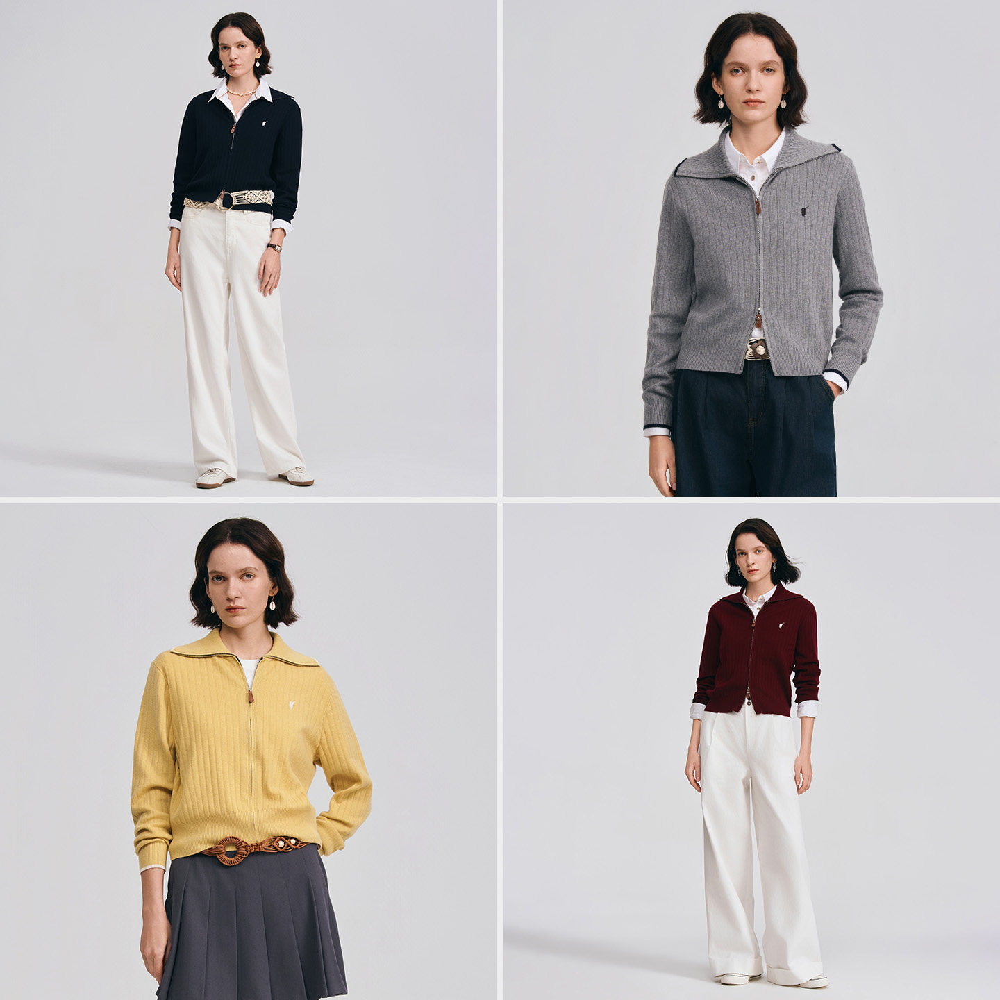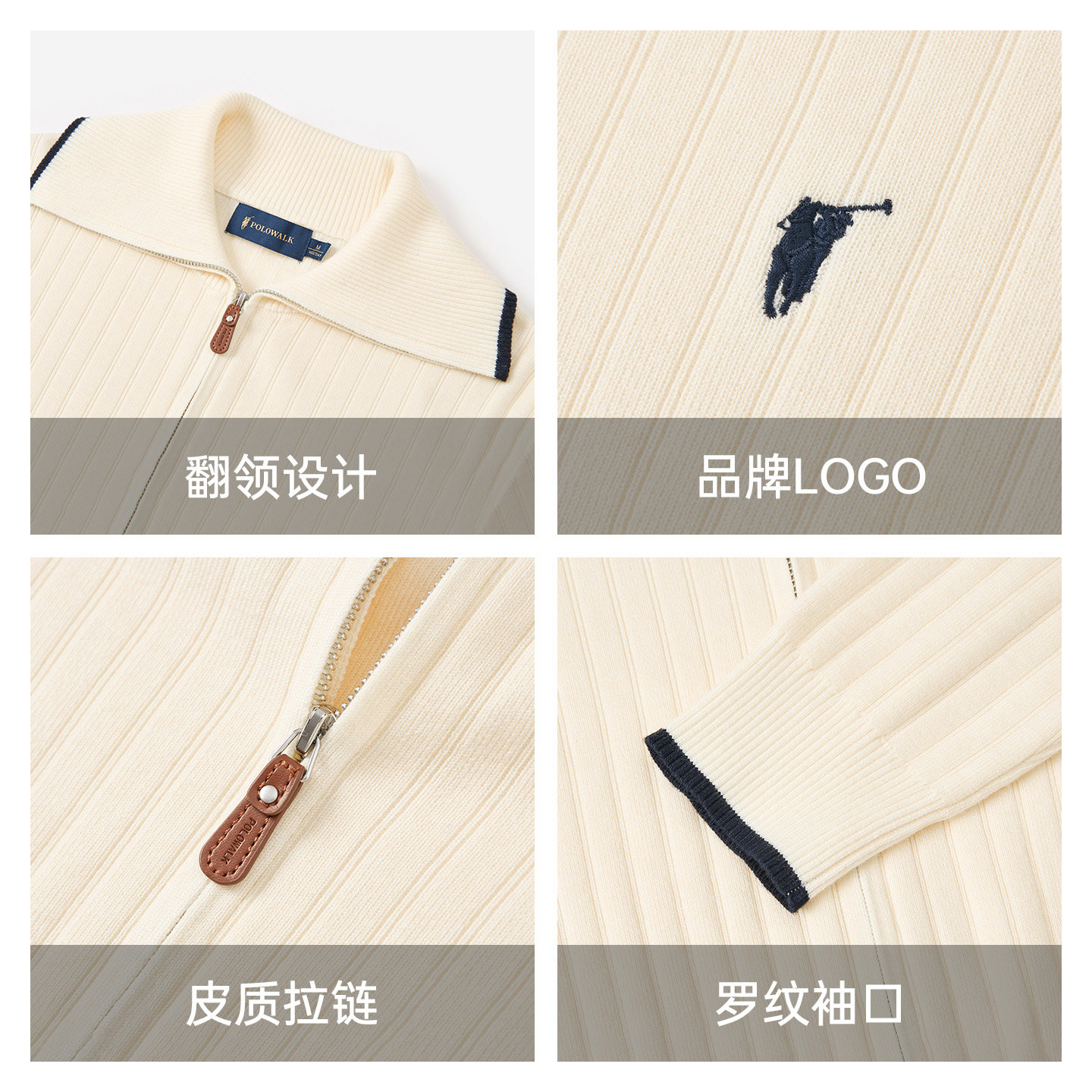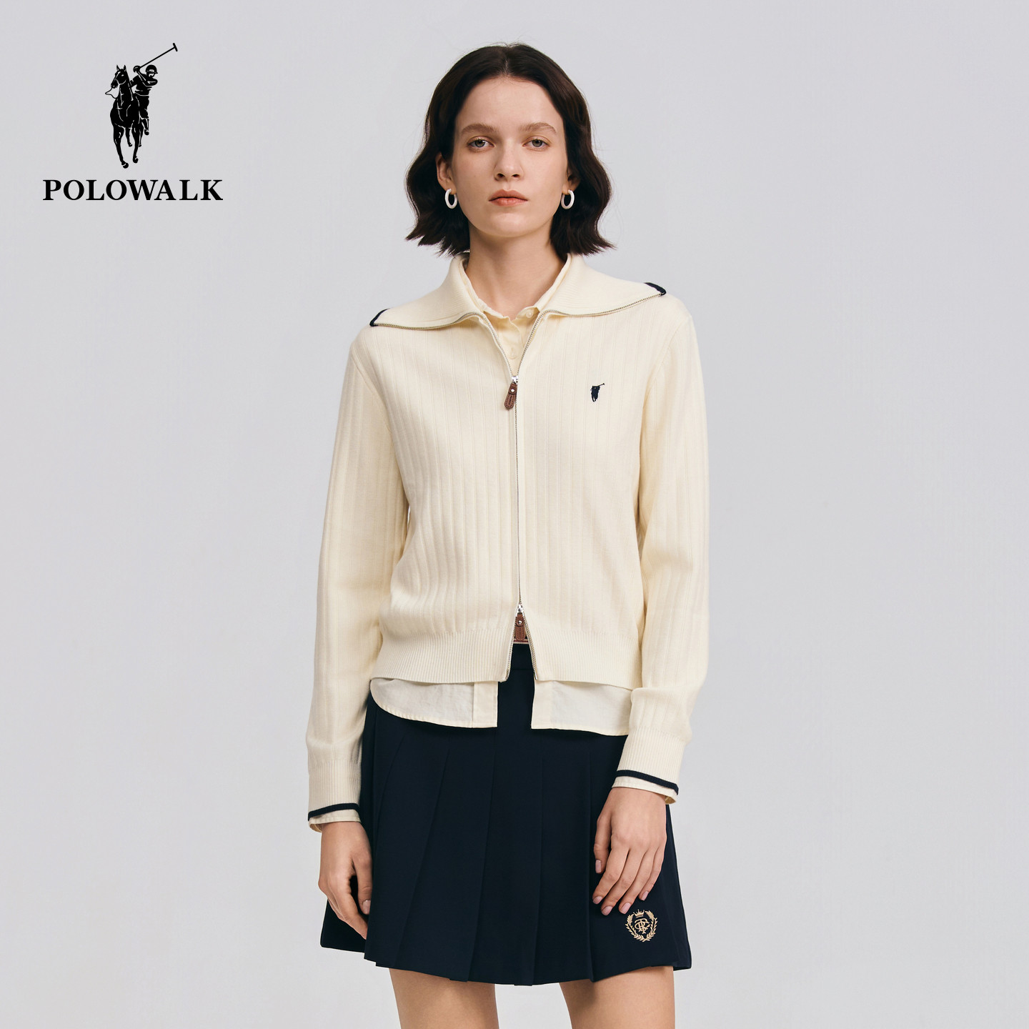 POLOWALK女装针织衫2026春季新款女士长袖针织开衫拉链翻领毛衣女