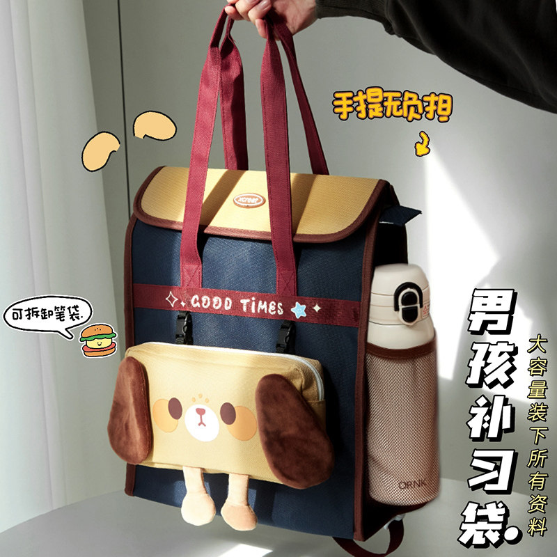 【加厚600D牛津布】小槑同学动物乐园补习袋小学生手提袋拎书袋男孩儿童补课包美术袋作业书包双肩可背补习包