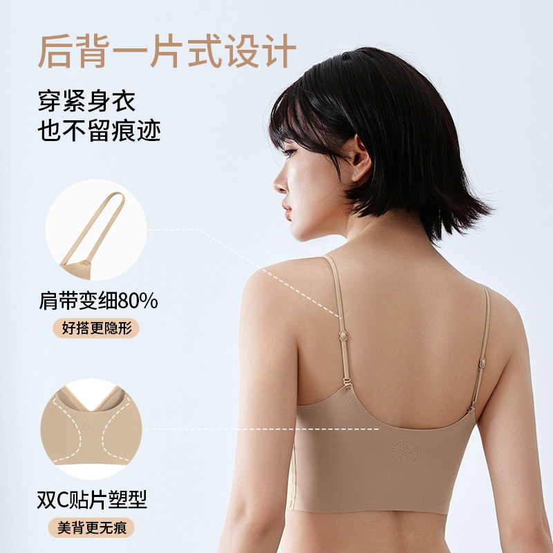 无痕美背抹胸内衣女小胸聚拢可外漏细肩带一体固定杯背心式文胸罩