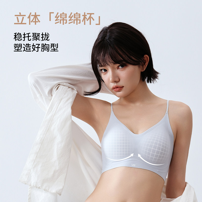 Lee李牌无痕内衣女小胸聚拢无钢圈露背抹胸吊带美背运动文胸薄款