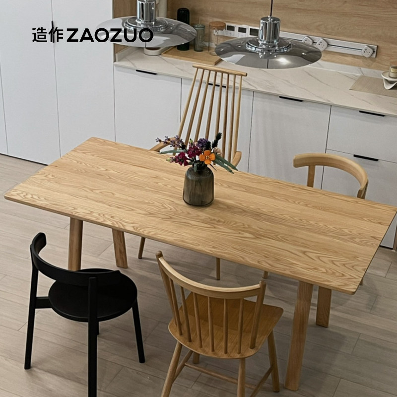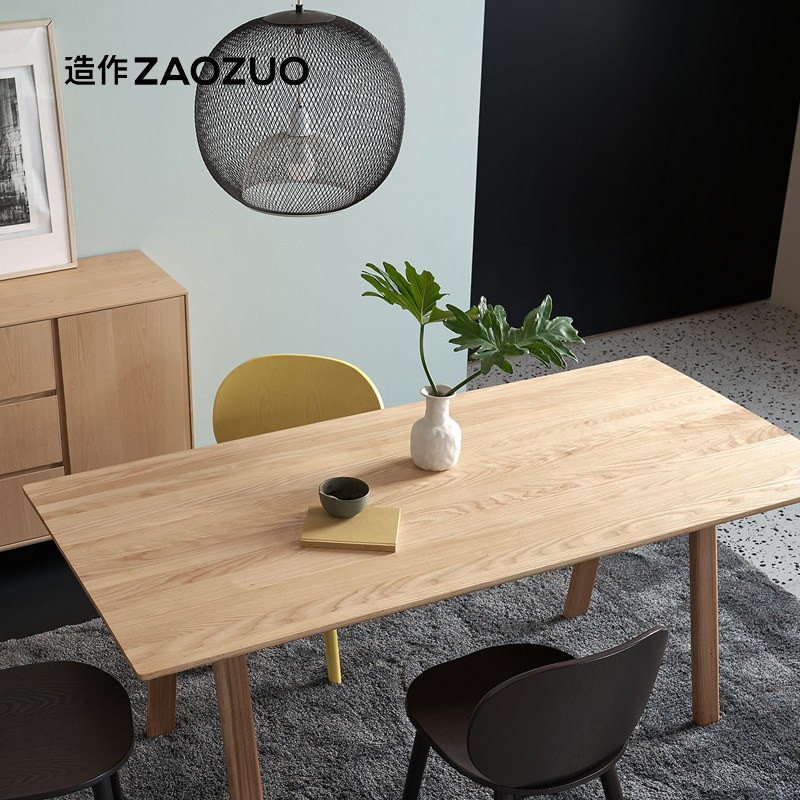 造作 飞鸟实木餐桌书桌1.8米白腊长方形写字桌现代极简日式ZAOZUO