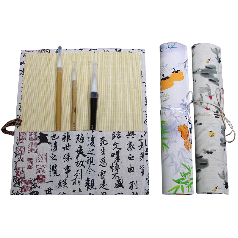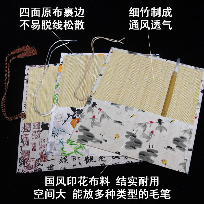 毛笔笔帘书法专用收纳袋国画绘画画笔卷帘竹制文房便携卷笔袋古风