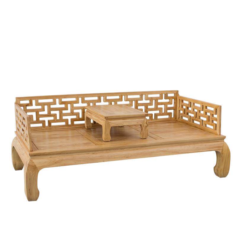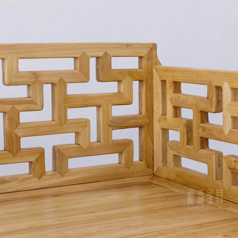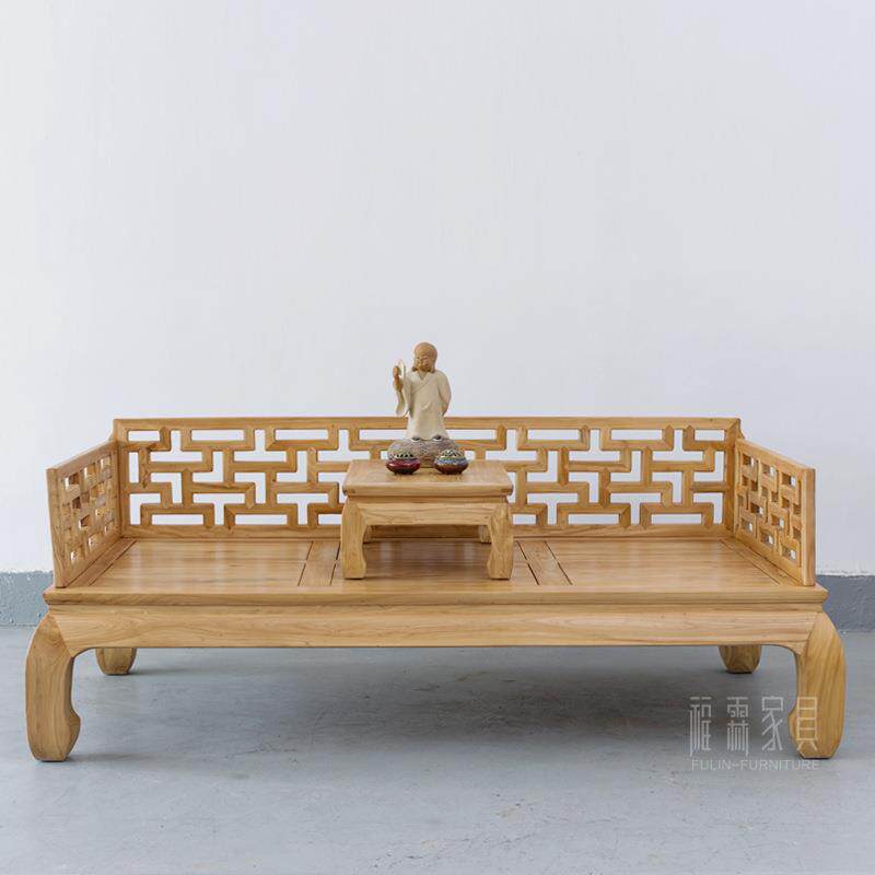 新中式老榆木罗汉床实木免漆三人位沙发美人榻万字格卯榫家具