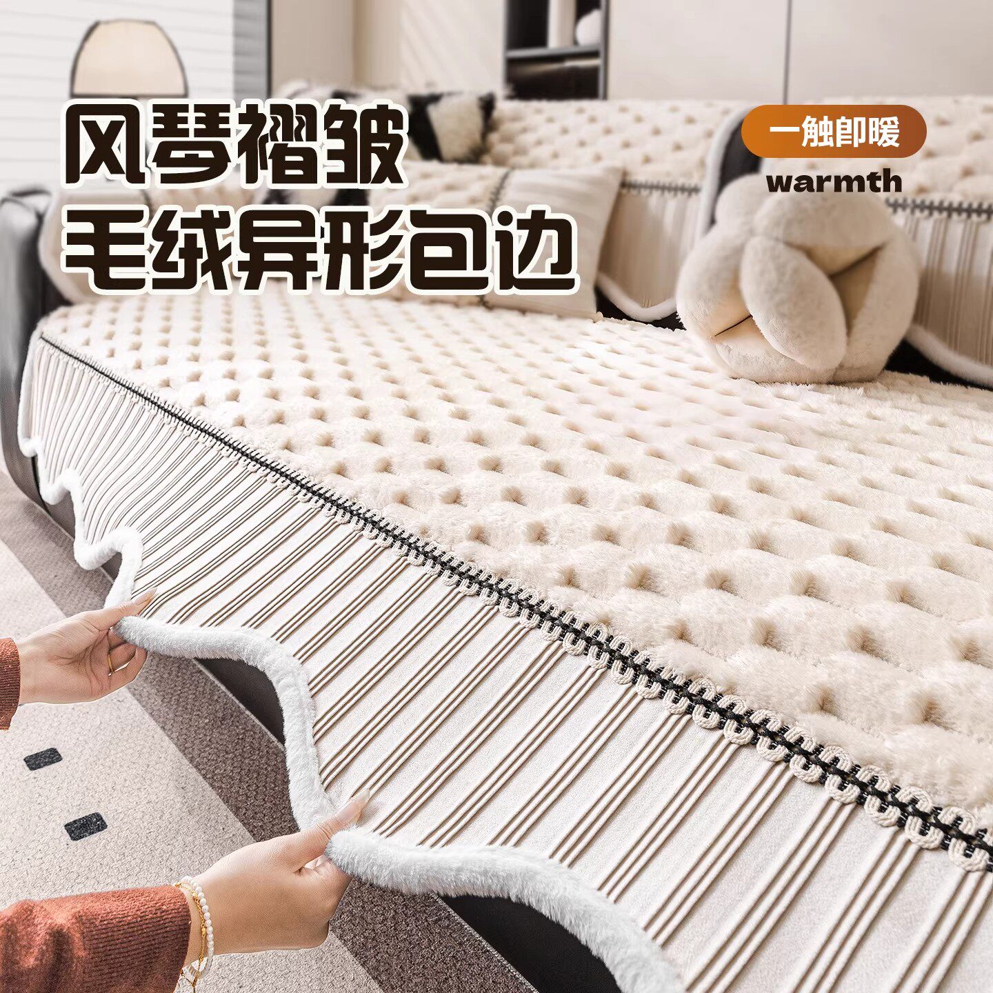 现代高级感皮沙发垫冬2025新款拼接异形沙发坐垫固定防滑直排盖布