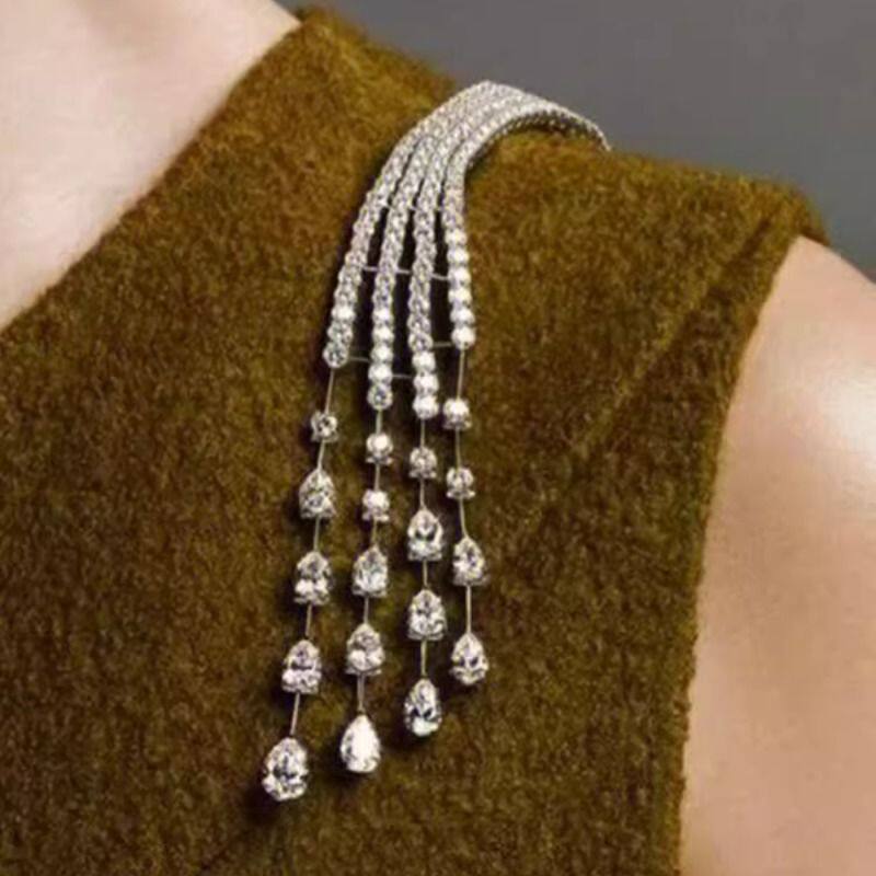 高级感流星闪钻胸针高端中古风长流苏肩针优雅气质大衣配饰感蝴蝶