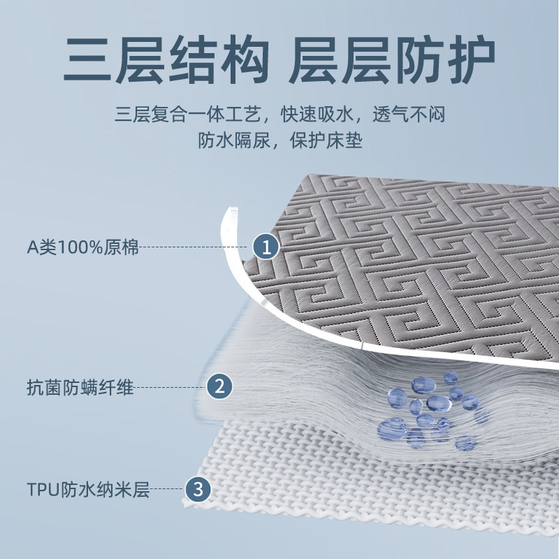 无印良品A类防水抗菌大豆夹棉床笠床罩隔尿保护罩全棉夹棉床单套