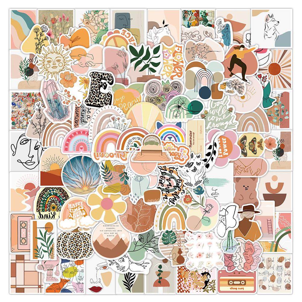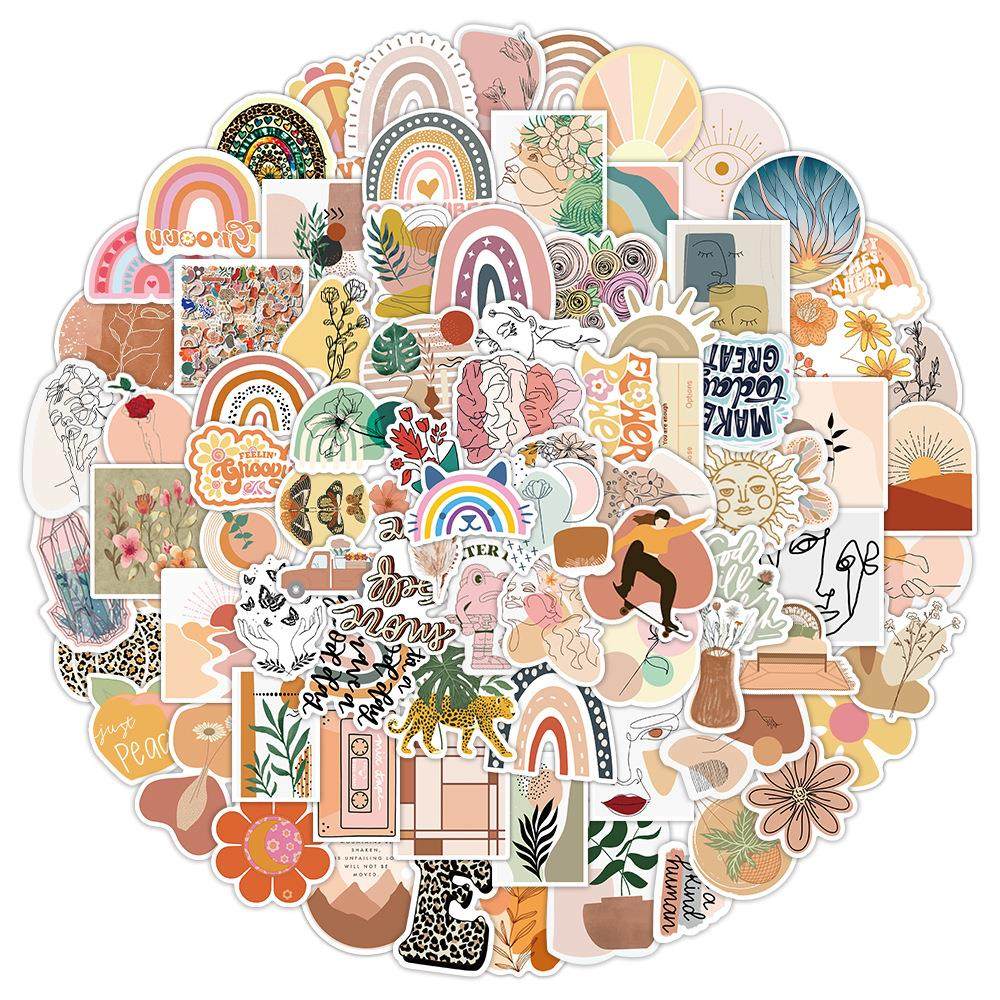 200张新款跨境波西米亚风涂鸦贴纸行李箱摩托车笔记本手机壳贴画