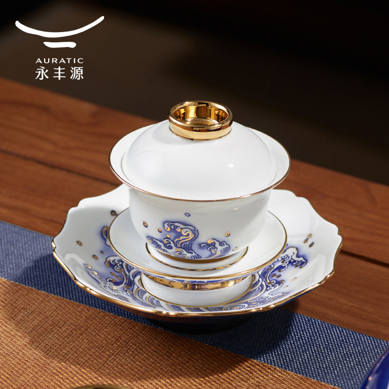 永丰源 先生瓷海上明珠3头陶瓷功夫茶具盖碗 茶杯茶碗高档轻奢