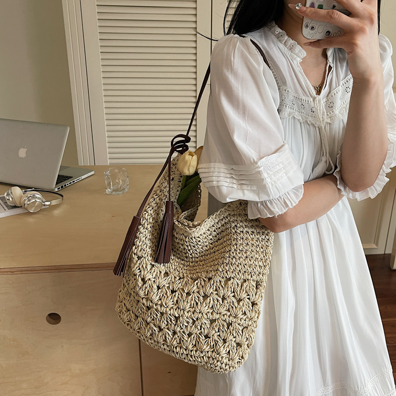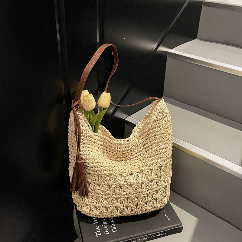 草编包女2025大容量夏天新款编织单肩包海边度假风通勤托特包手提