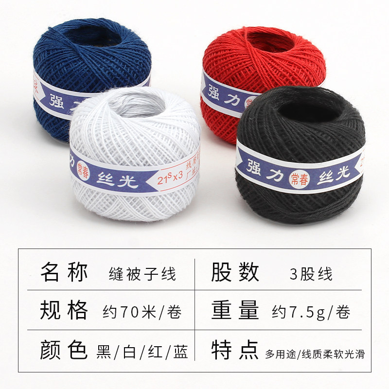 3股棉线家用缝被子线手工缝纫线棉线球白色黑色红色线送粗针手缝