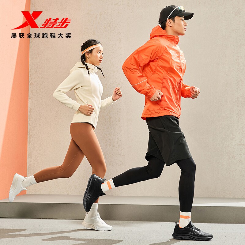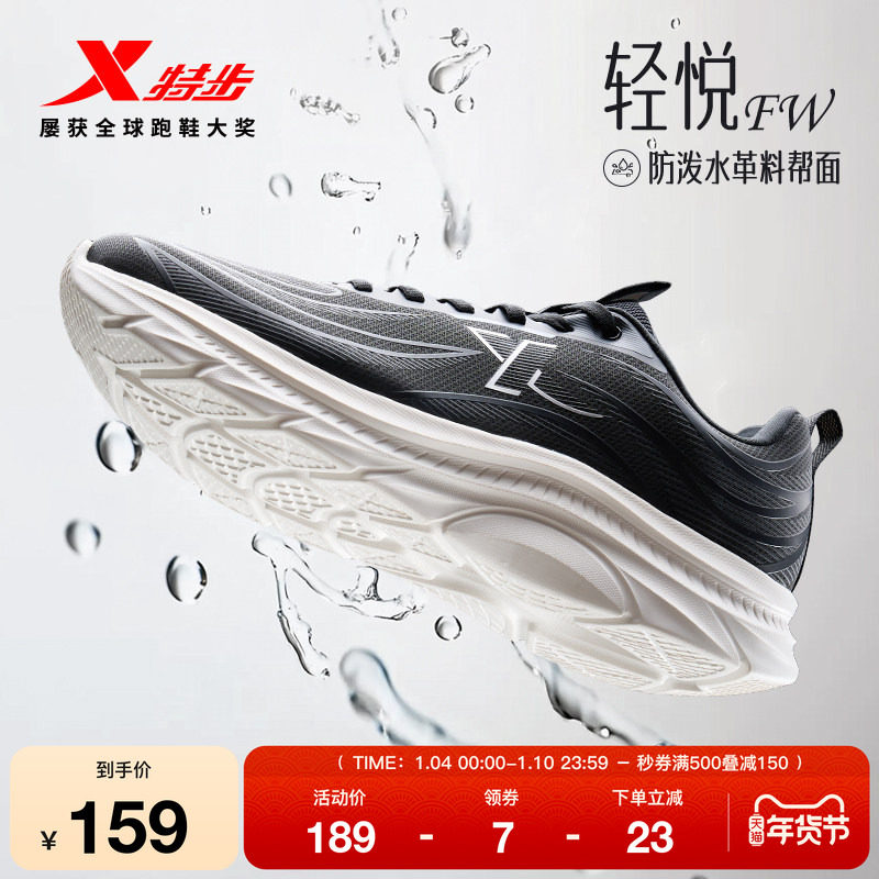 特步轻悦FW丨跑步鞋男鞋革面软底跑鞋黑色减震加绒运动鞋男士鞋子