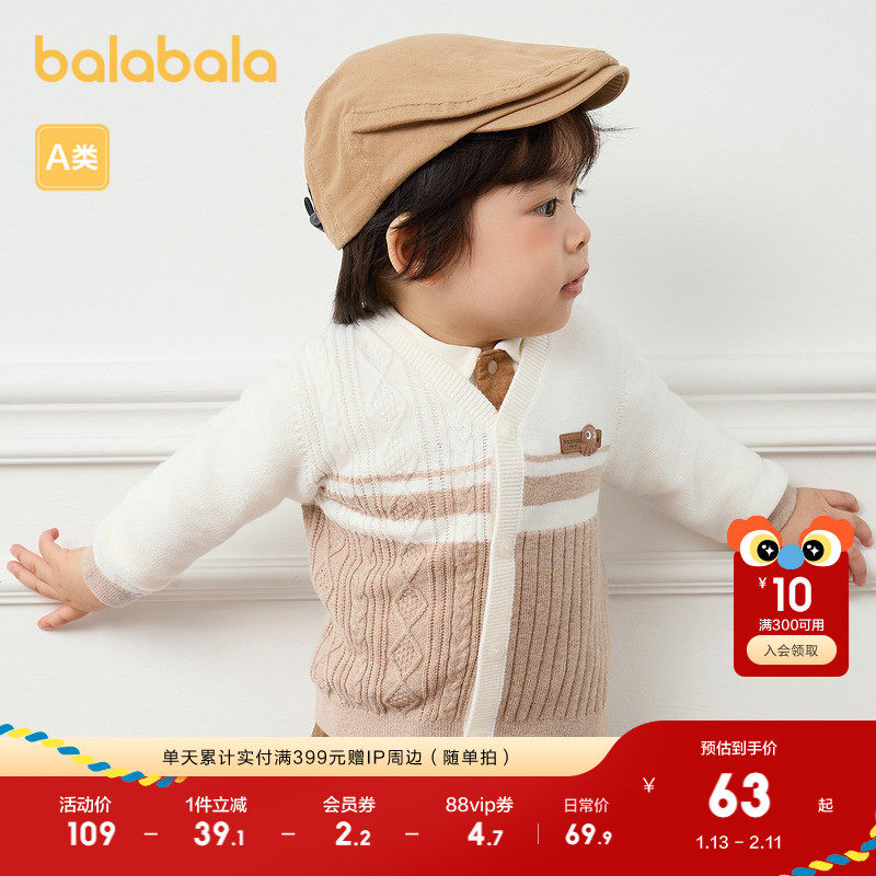 巴拉巴拉宝宝毛衣婴儿针织衫薄开衫男童秋装撞色设计时尚气质洋气