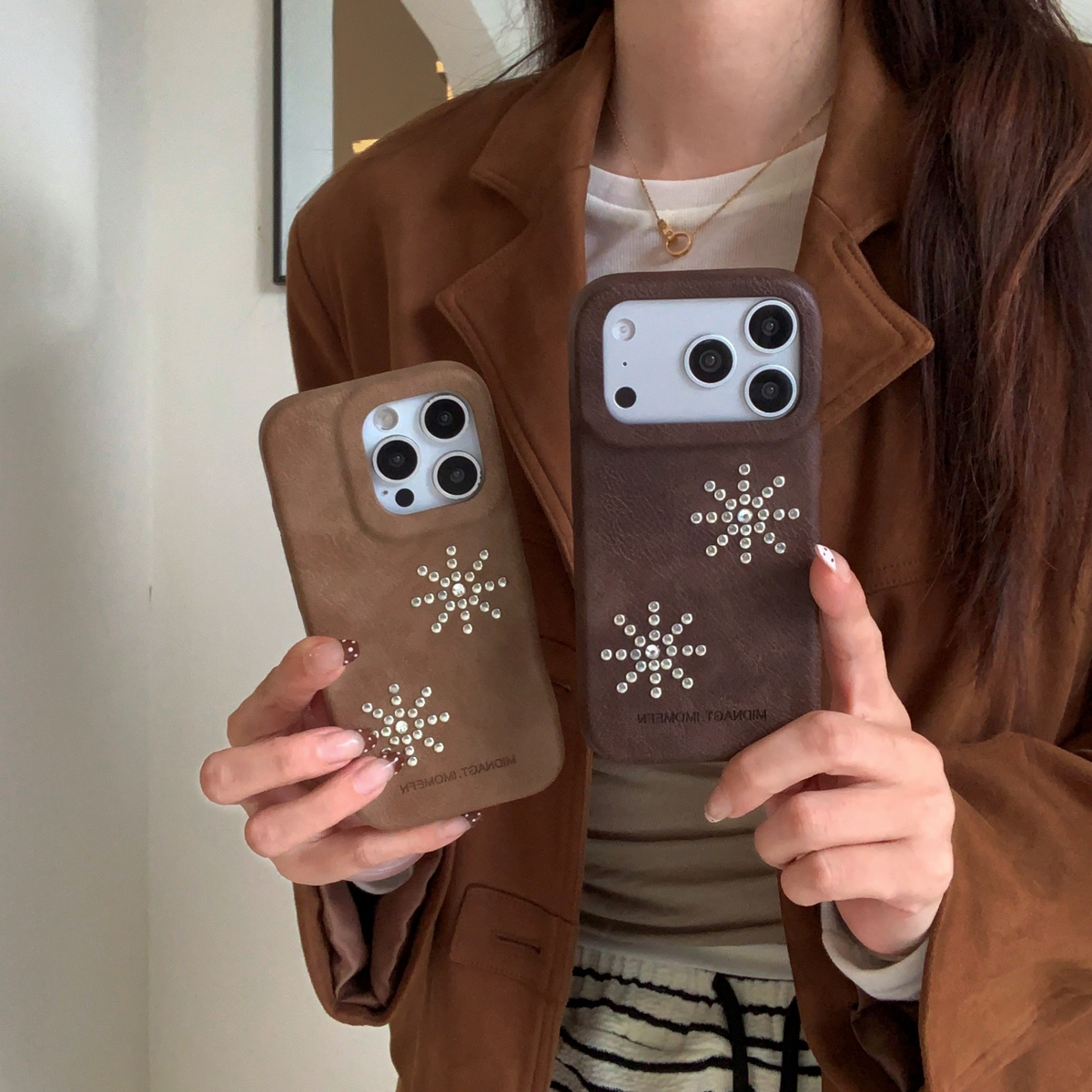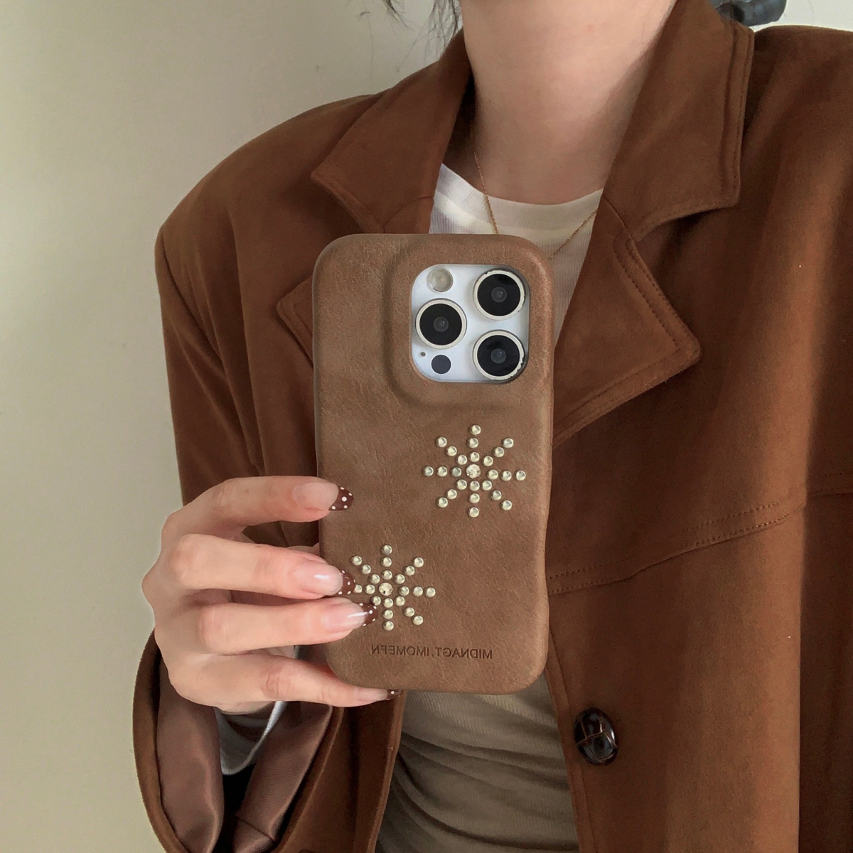 疯马纹字母大孔全包铆钉钻雪花适用于苹果13/14时尚爆款手机壳潮流17系列手机保护套ins风创意15promax手机保